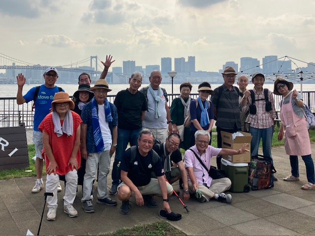 JR有楽町駅、数寄屋橋3番のバス停から乗車し新豊洲駅バス停で下車(約20分)、そこから豊洲ぐるり公園までは徒歩で20分、待ち合わせ場所の変更でトラブルはありましたが30分遅れでBBQスタート。