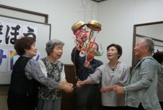 高島式体操で座りっぱなしの身体をもみほぐし、リズムとカツを入れます。- なかなか動作が合わないね